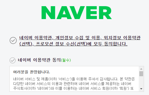 네이버 회원가입 페이지의 체크박스는 기본적으로 false가 되어있다.