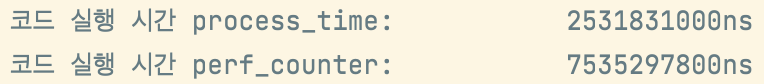 역시나 초 단위로 결과를 반환하고, ns 단위의 결과를 얻고 싶다면 perf_counter_ns()를 사용하면 된다.