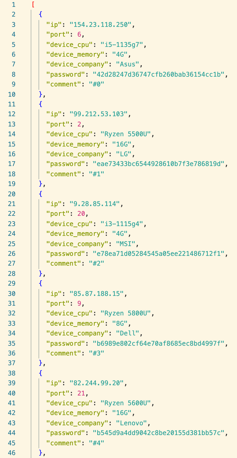 대충 비슷한 상황을 만들기 위해 python으로 랜덤 하게 device json 목록을 만들어 보았다.