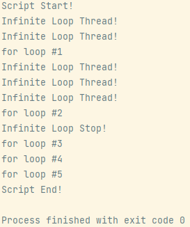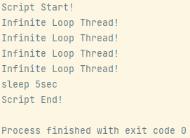 위와 같이 무한 루프를 도는 스레드를 데몬 스레드로 설정해 주면 메인 스레드가 끝날 때 같이 종료되는 것을 확인할 수 있다.