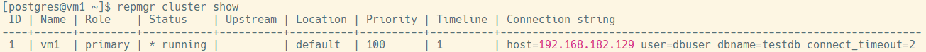 등록 후 위 명령어를 입력하면 현재 repmgr에 등록된 클러스터를 조회할 수 있다.