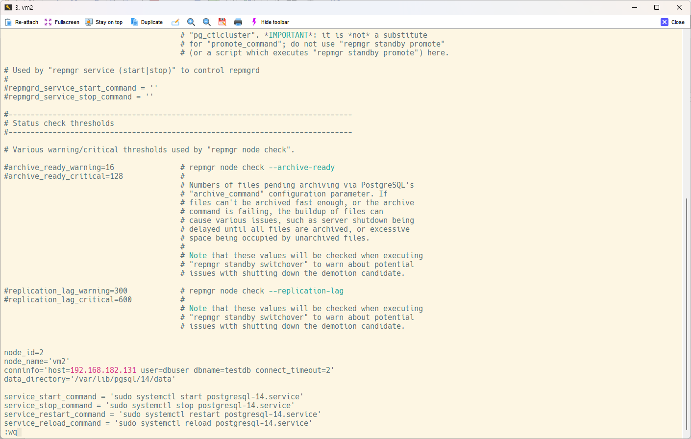 standby로 설정할 vm2의 IP는 192.168.182.131이다.