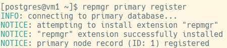 설정 파일 수정이 모두 끝나면 이제 repmgr에 현재 서버를 primary로 등록해주면 된다.