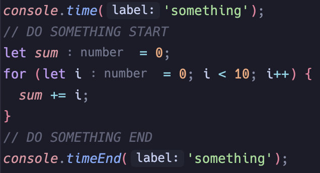 console.time()과 console.timeEnd() 사이에 측정하고 싶은 코드를 두면 실행 시간을 알 수 있다.