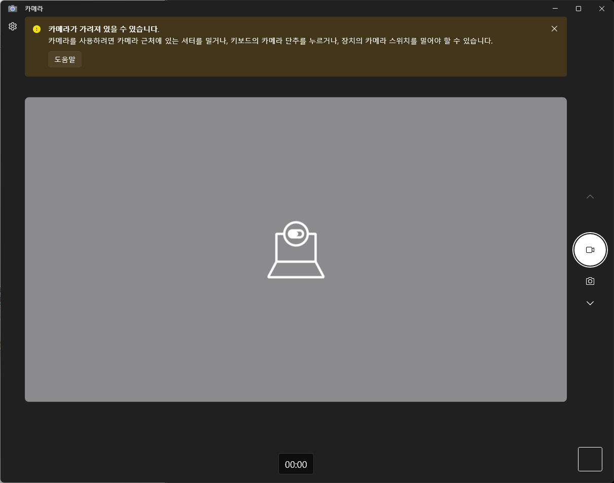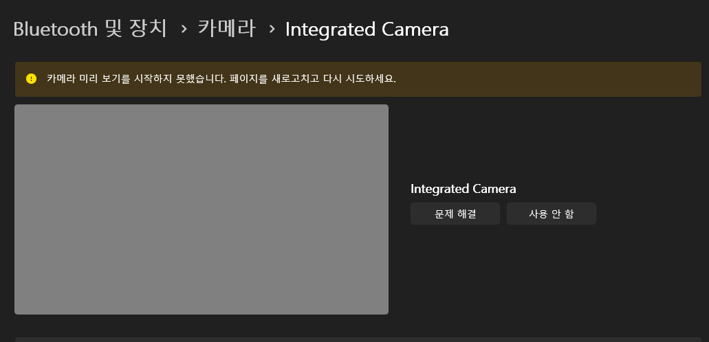 위와 같은 화면이 뜨면서 카메라 기능이 아예 작동하지 않았다.