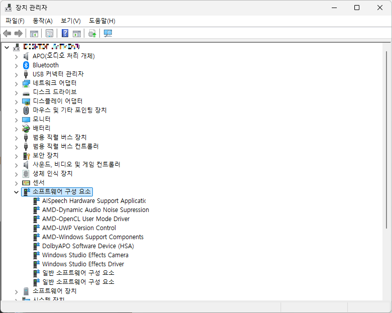 장치 관리자에서 소프트웨어 구성 요소를 찾아준다.