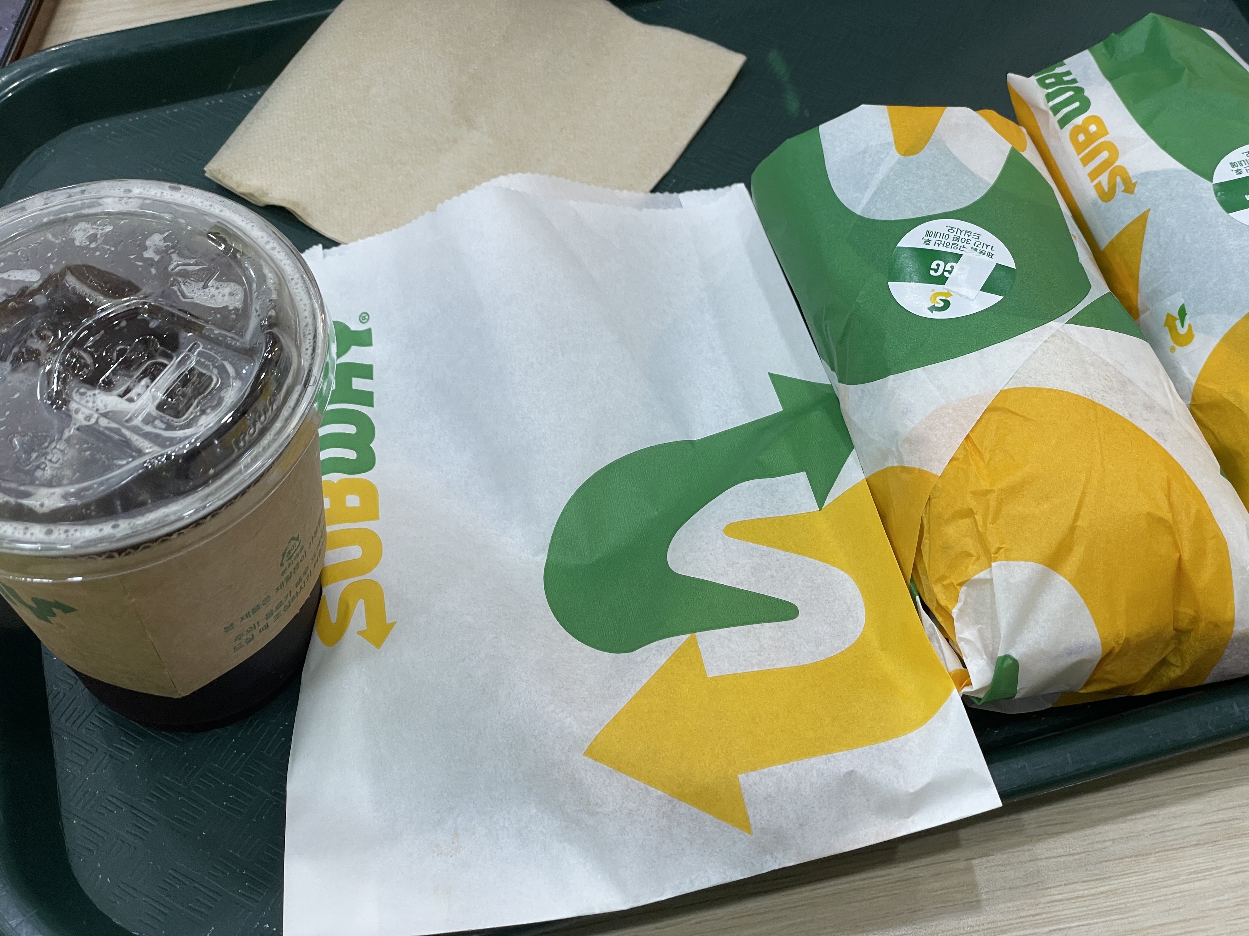 아내와 함께 퇴근길에 서브웨이에서 샌드위치를 먹었다.
