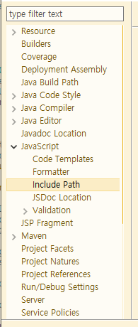 위 사진들처럼 그냥 따로 JavaScript가 있는 경우가 있고 Client-side JavaScript라고 되어있는 경우도 있다. 둘 다 똑같은 곳이니 열고 Include Path에 들어가 준다.