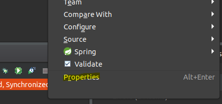 우선 project를 우클릭한 후 Properties에 들어간다. (Alt+Enter 단축키로도 들어갈 수 있다.)