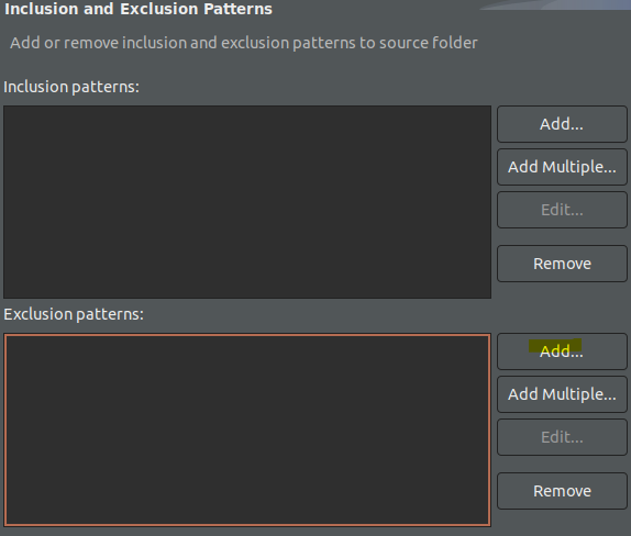 그러면 창이 하나 나타나는데 그 창에서 Exclusion patterns의 Add를 눌러 min.js 패턴을 입력해주면 된다.
