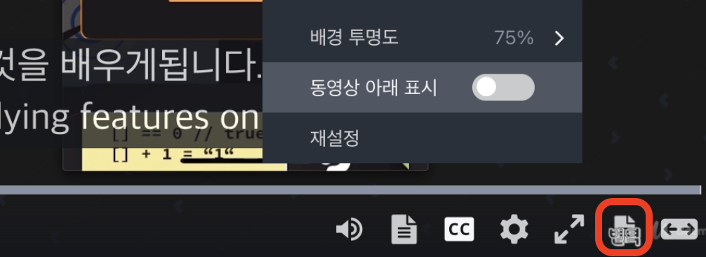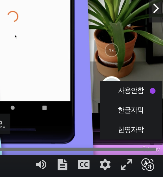 한글자막과 한영 자막을 선택하는 부분을 고민을 많이 했었는데 나는 기존에 버튼 형식을 누르면 다른 자막 버튼이나 설정 버튼과 같이 메뉴창이 뜨는 형식으로 만들기로 하였다.